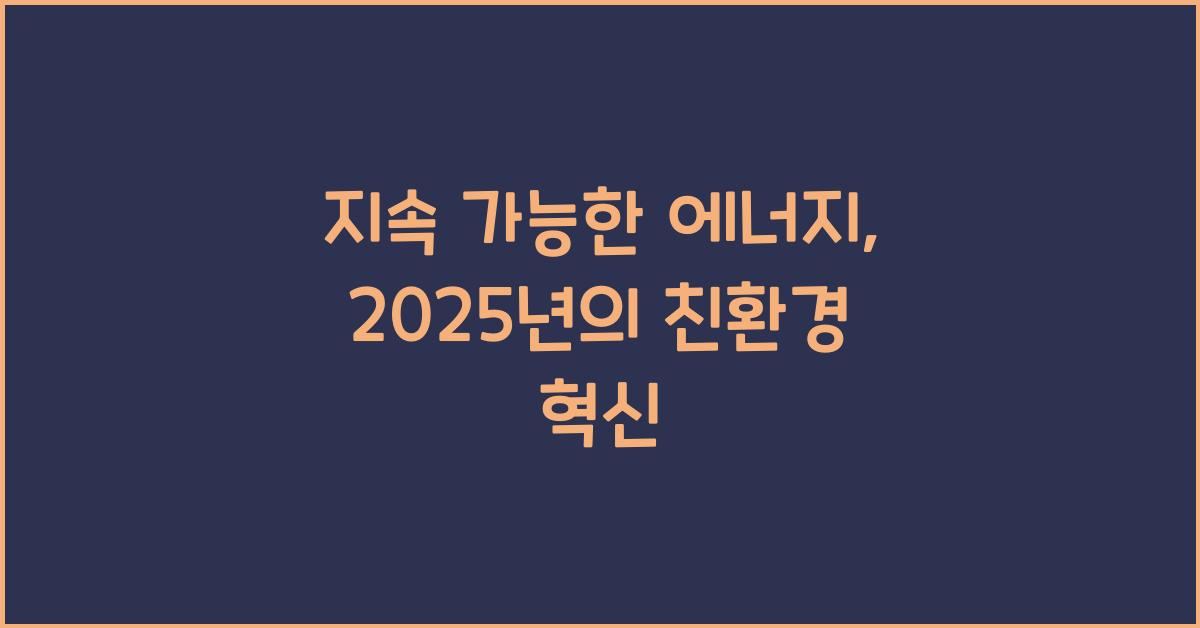 지속 가능한 에너지, 2025년의 친환경 혁신