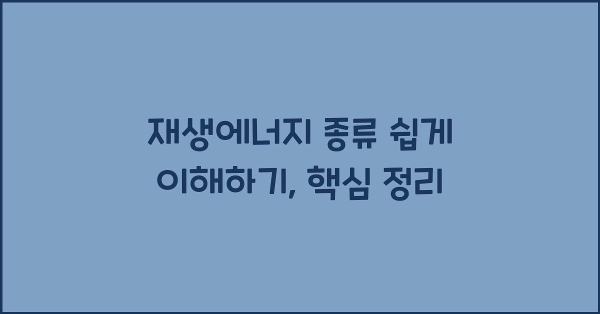 재생에너지 종류 쉽게 이해하기, 핵심 정리