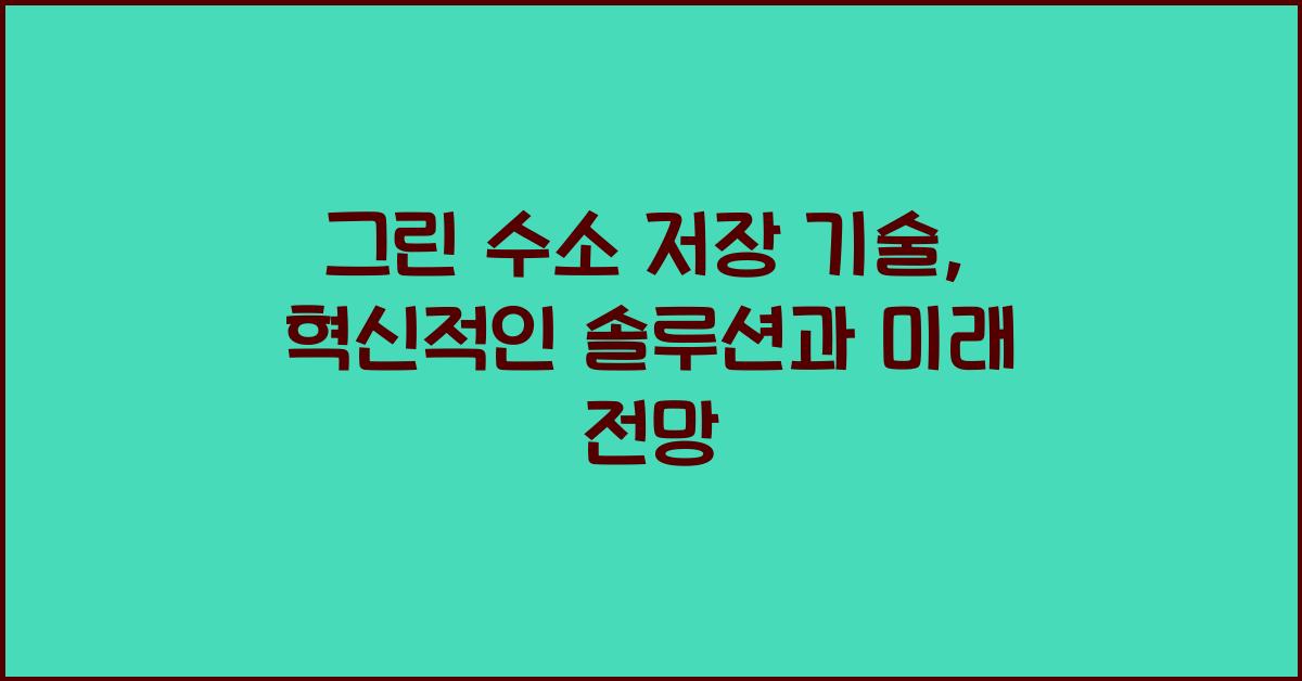 그린 수소 저장 기술, 혁신적인 솔루션과 미래 전망