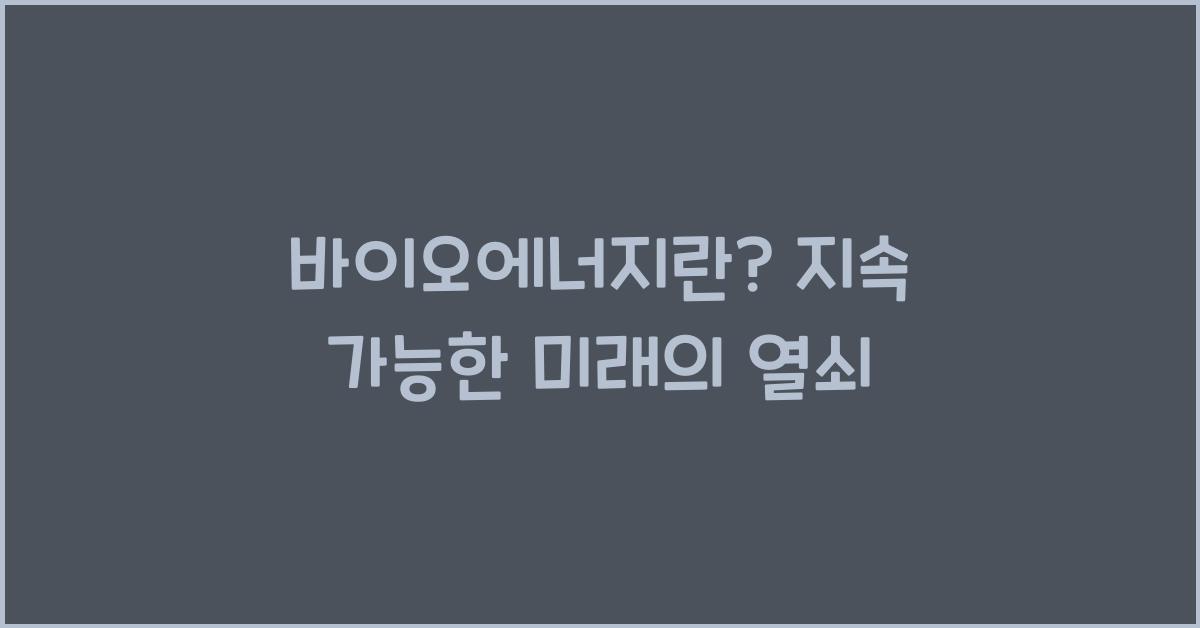 바이오에너지란? 지속 가능한 미래의 열쇠