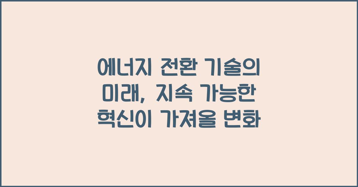 에너지 전환 기술의 미래, 지속 가능한 혁신이 가져올 변화