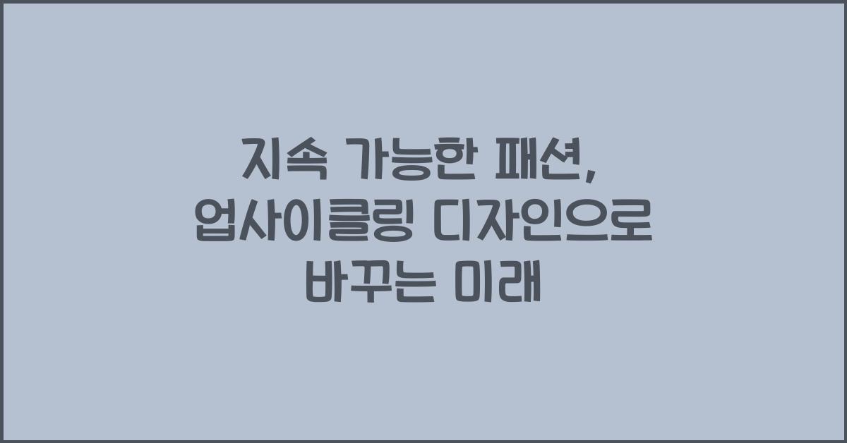 지속 가능한 패션, 업사이클링 디자인으로 바꾸는 미래