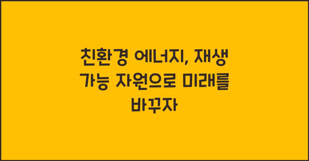 친환경 에너지, 재생 가능 자원으로 미래를 바꾸자