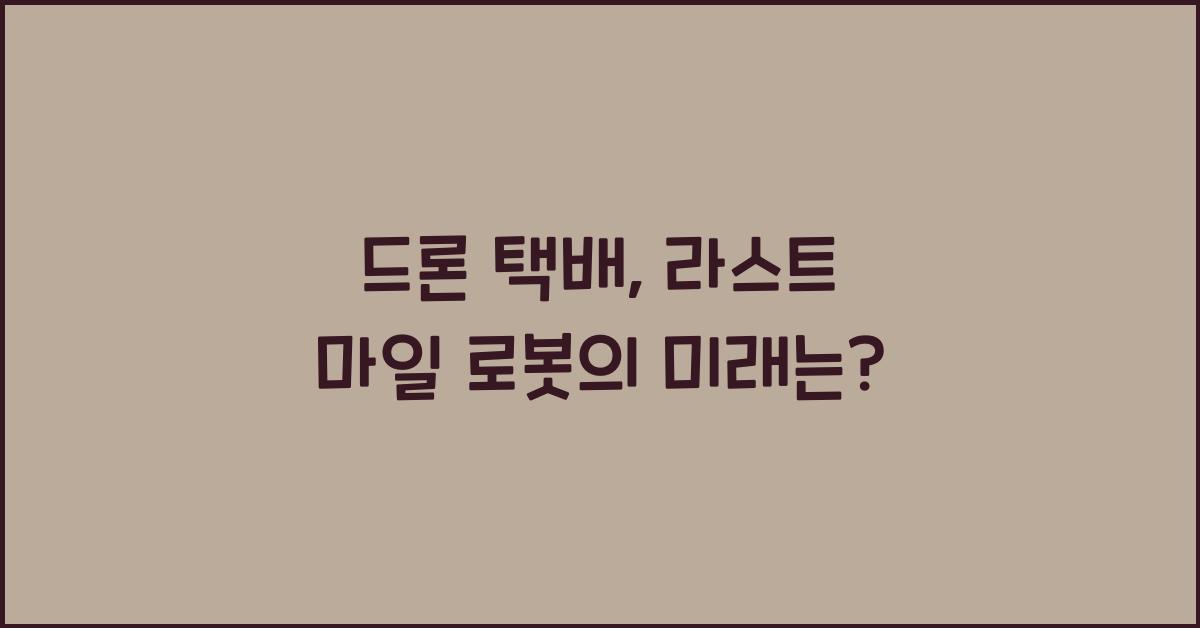 📦 드론 택배와 라스트 마일 로봇의 정의드론 택배는 하늘을 나는 무인 항공기로, 상품을 소비자의 집 앞까지 배달하는 혁신적인 방법입니다. 이와 함께, 라스트 마일 로봇은 보통 보행자 도로를 따라 움직이는 자율 이동 수단으로, 물건을 최종 목적지까지 배송하는 역할을 합니다. 이 두 가지 기술은 특히 도시 지역의 물류 물류 시스템에 큰 변화를 가져오고 있습니다.드론 택배, 라스트 마일 로봇 더 알아보기과거에는 사람들이 직접 매장을 방문하거나, 배송을 위해 긴 시간을 기다려야 했습니다. 하지만 드론 택배와 라스트 마일 로봇 덕분에 우리는 이제 손쉽게 물품을 주문하고, 빠른 시간 안에 이를 받을 수 있게 되었습니다. 이런 변화는 단순히 편리함을 가져다주는 것을 넘어, 우리의 생활 방식을 근본적으로 바꾸고 있습..